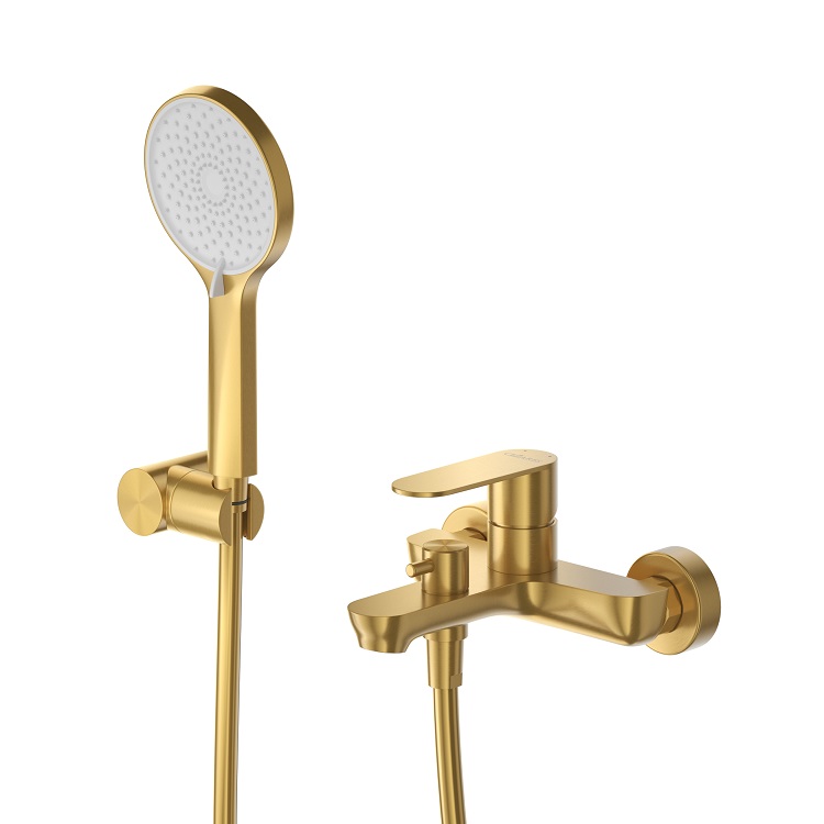 Смеситель для ванны и душа в комплекте с ручным душем, шлангом и держателем STYLUS-VD-BORO брашированное золото   Cezares